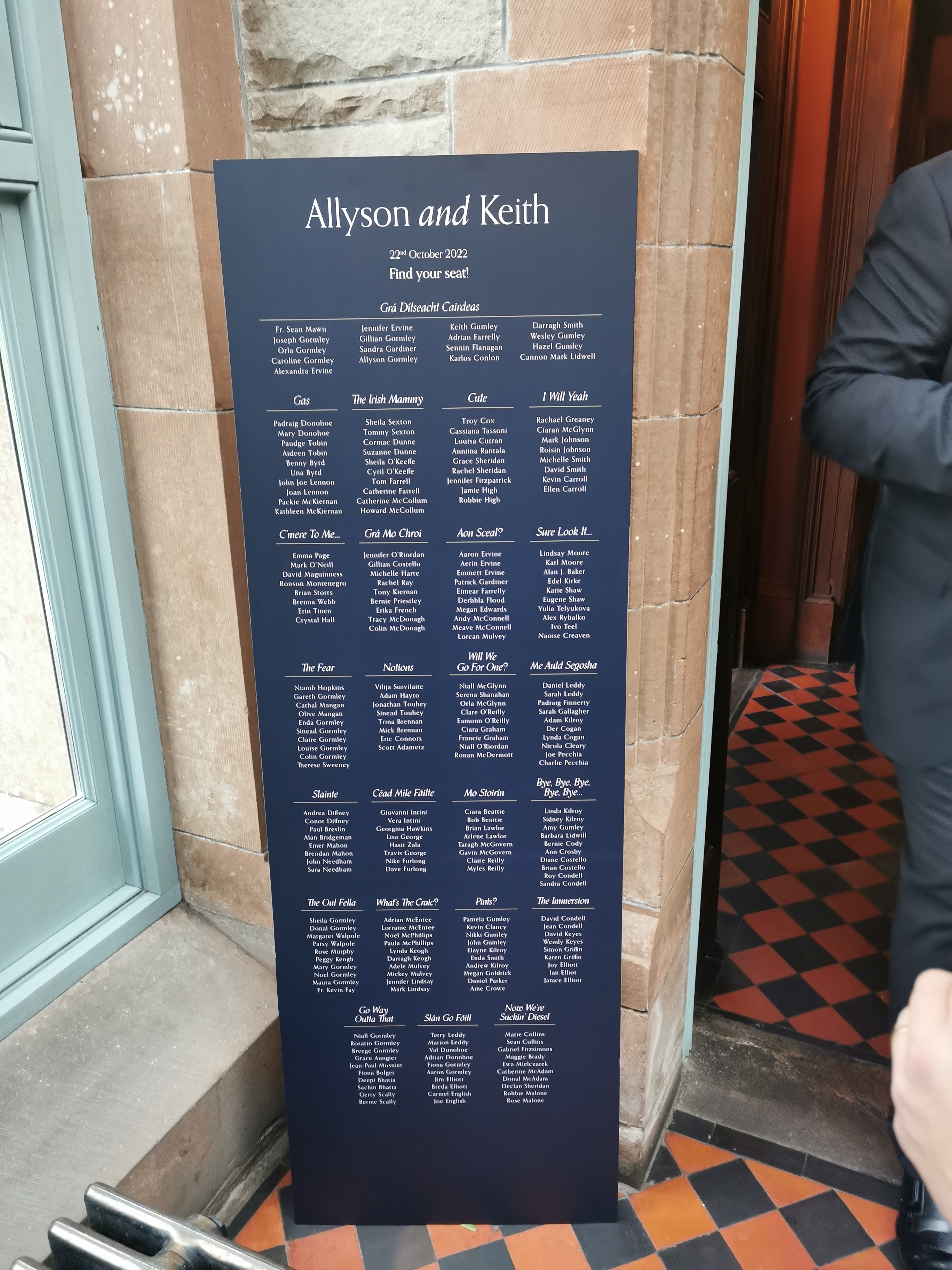 It was 6 nations time of year in 2015, Ireland were playing France in the Stade de France. It was Doheny & Nesbitt’s bar in Dublin, half time refreshments were called for and all of sudden whilst patiently queuing at the bar, a cheeky nudge. There she was and the rest as they say, is history, as here we are 7 years on planning for all our future adventures together and we are excited to be bringing all our favourite people together on our special weekend!